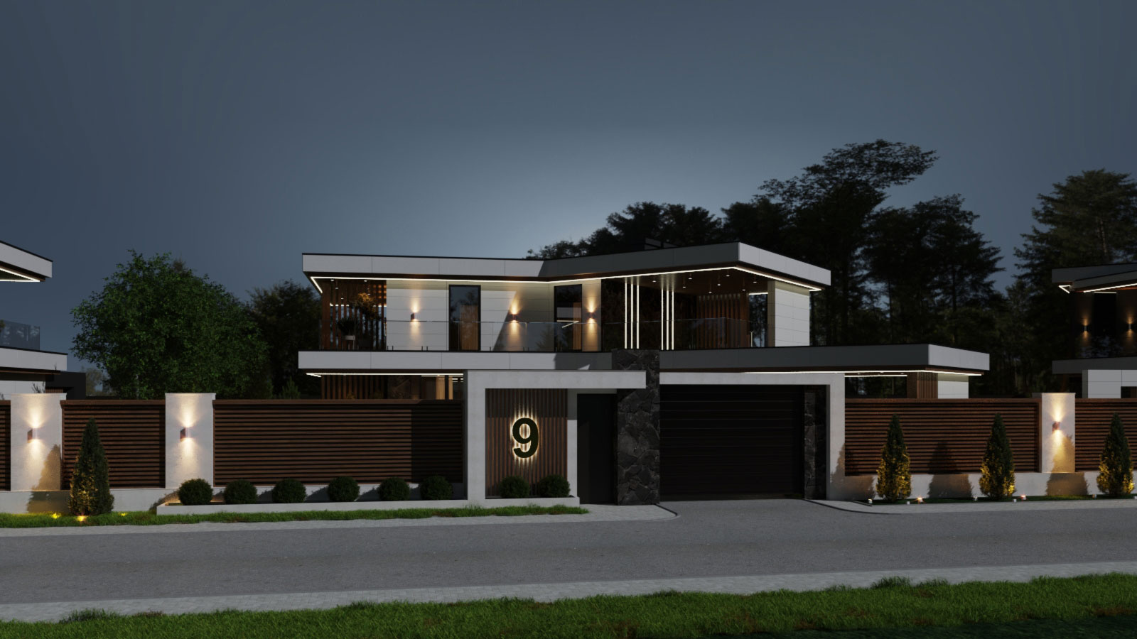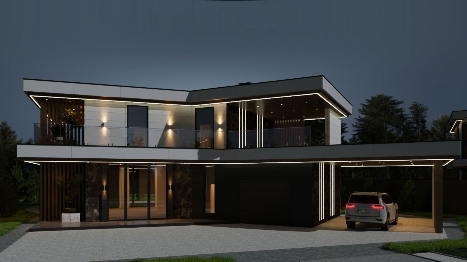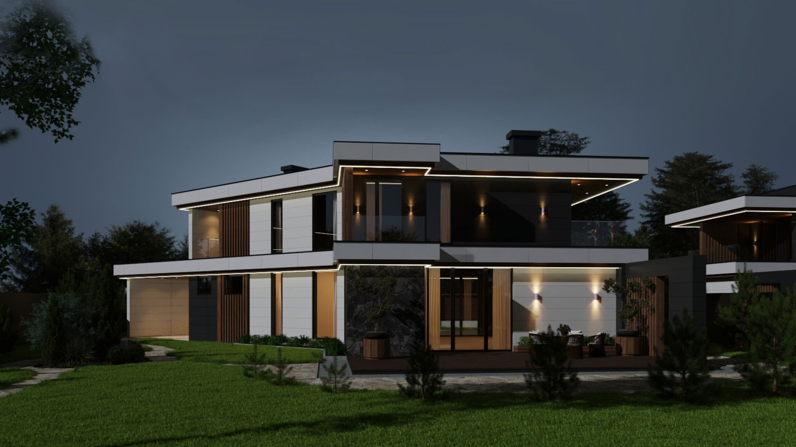 Архитектурный проект загородного дома премиум класса 265 кв.м. Для проекта коттеджного поселка в п. Машкачи (г. Киров) выполнена разработка 3 типов современных двухэтажных домов в единой стилистике, каждый из которых имеет индивидуальные архитектурные особенности и изначальную планировку, которую по желанию конечного клиента можно изменить.