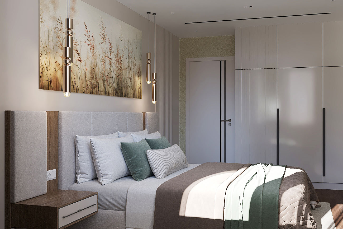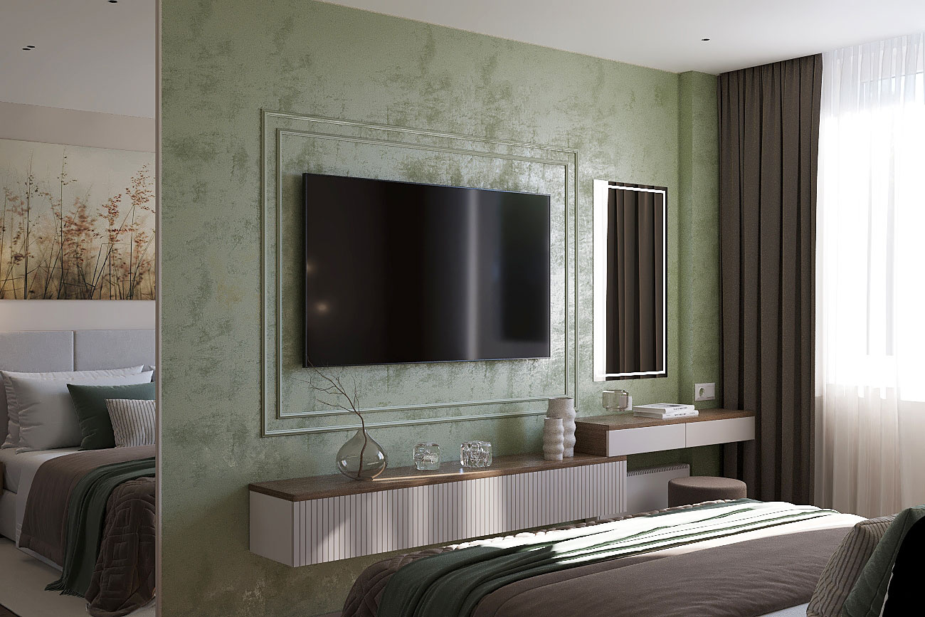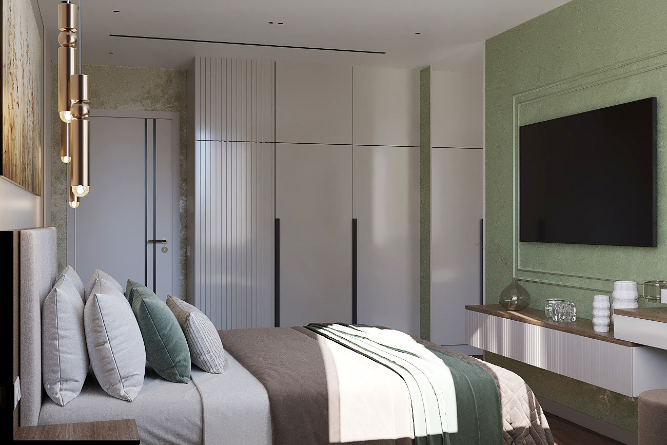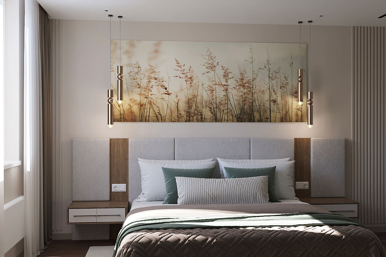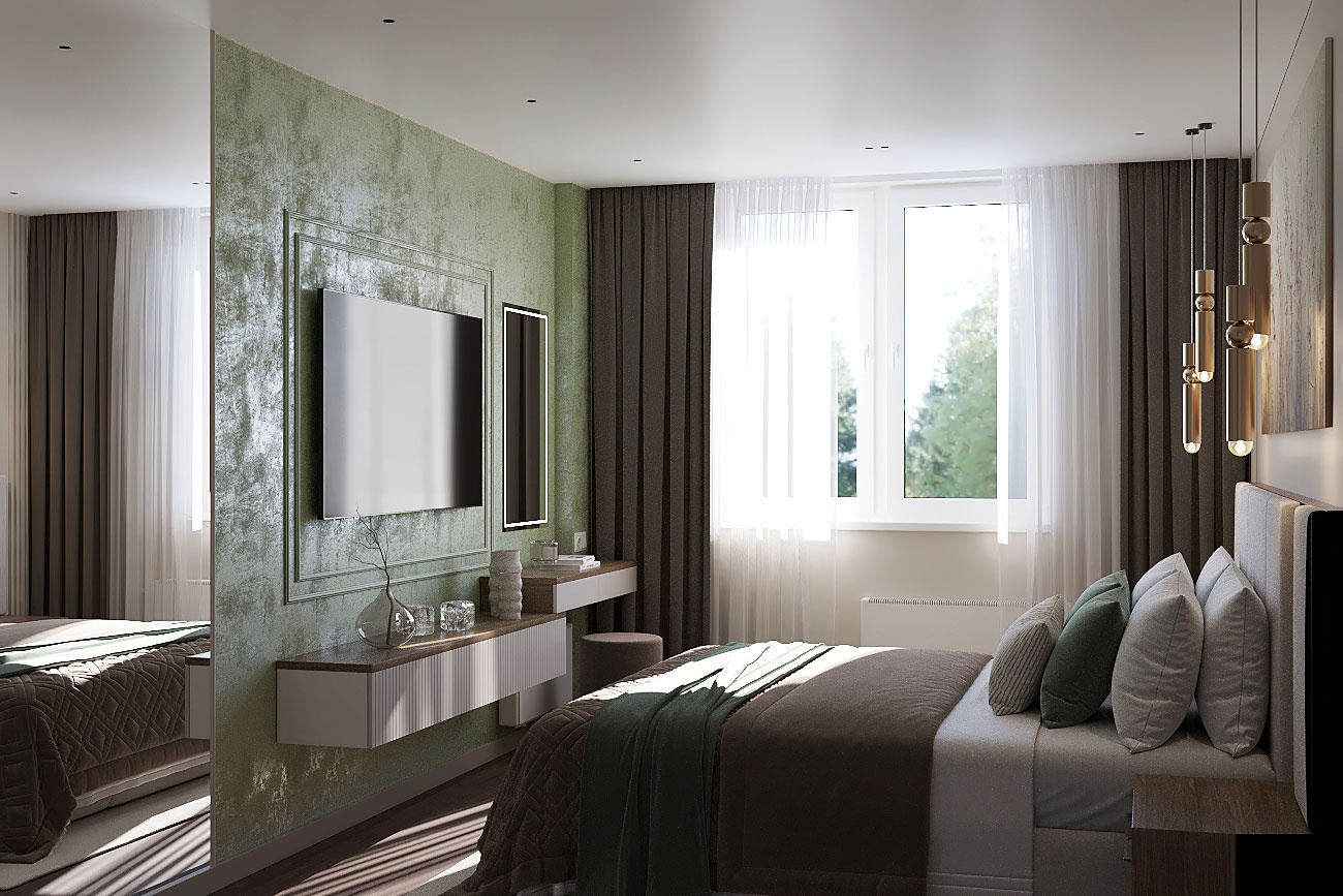 Дизайн проект интерьера спальни в квартире в г. Кирово-Чепецк, площадь - 14 кв.м.