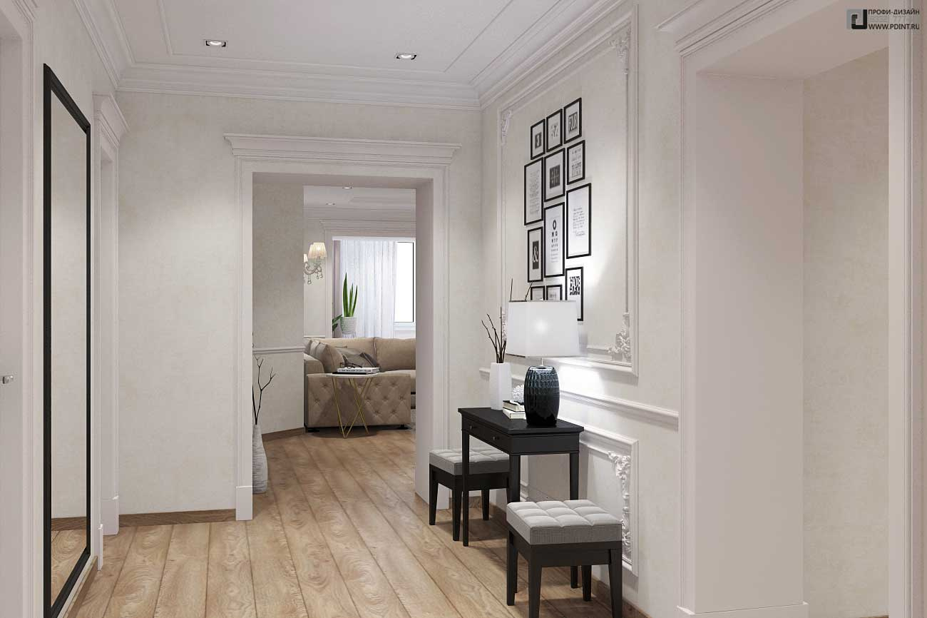 В начале работы над дизайном интерьера был разработан проект перепланировки квартиры с дальнейшим согласованием: для оптимизации пространства были перенесены межкомнатные перегородки и демонтированы балконные блоки. Это позволило максимально задействовать имеющееся пространство квартиры.
