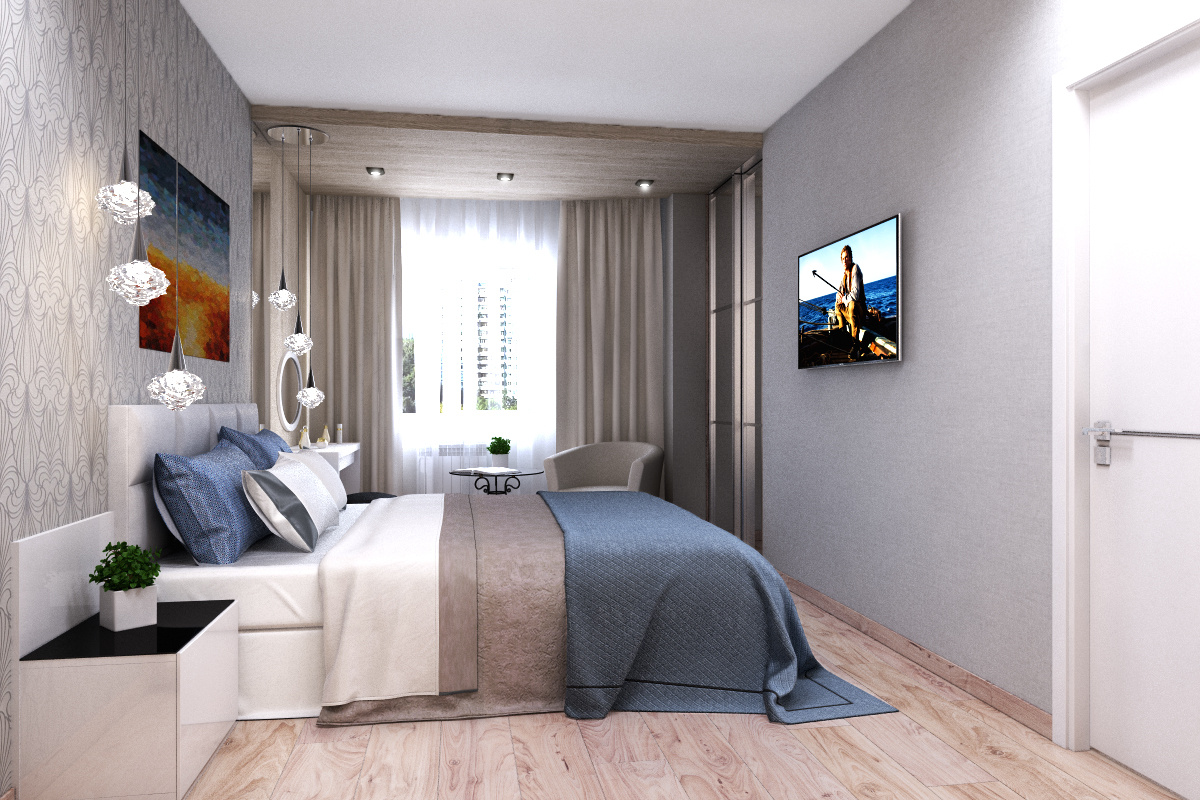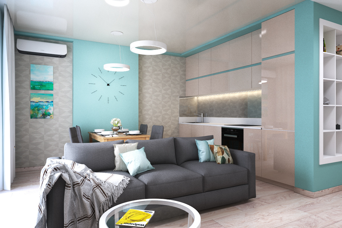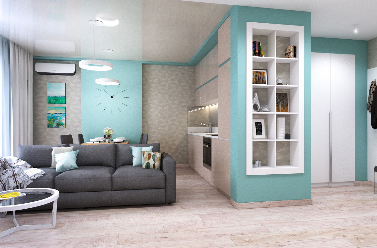 Дизайн проект интерьера квартиры студии 45 кв.м. в современном стиле в Кирове.