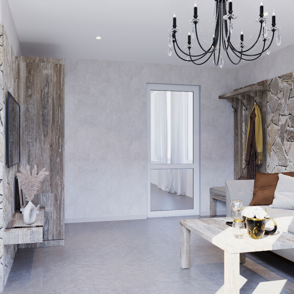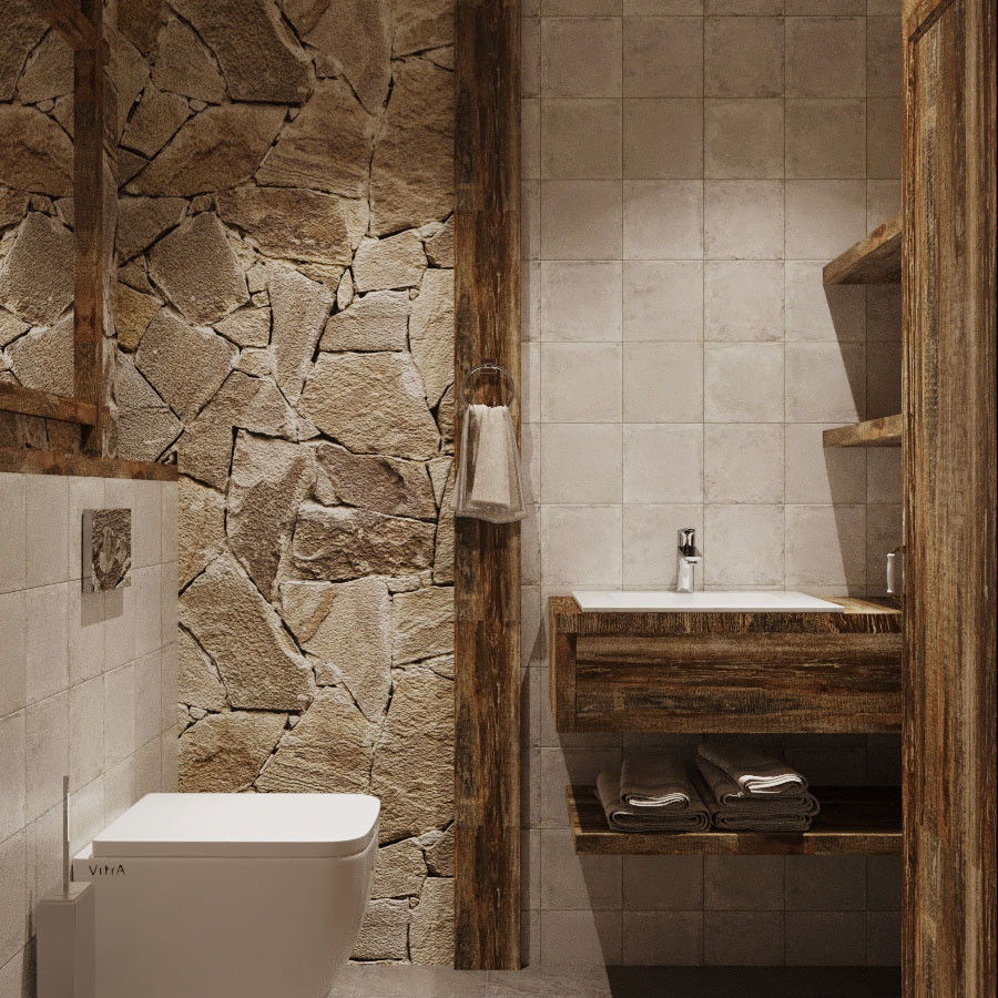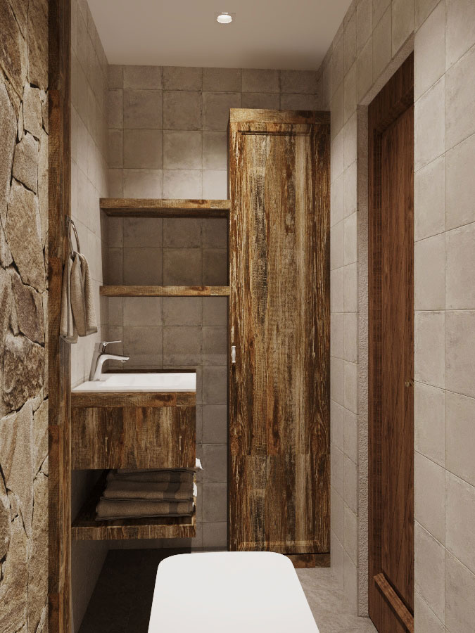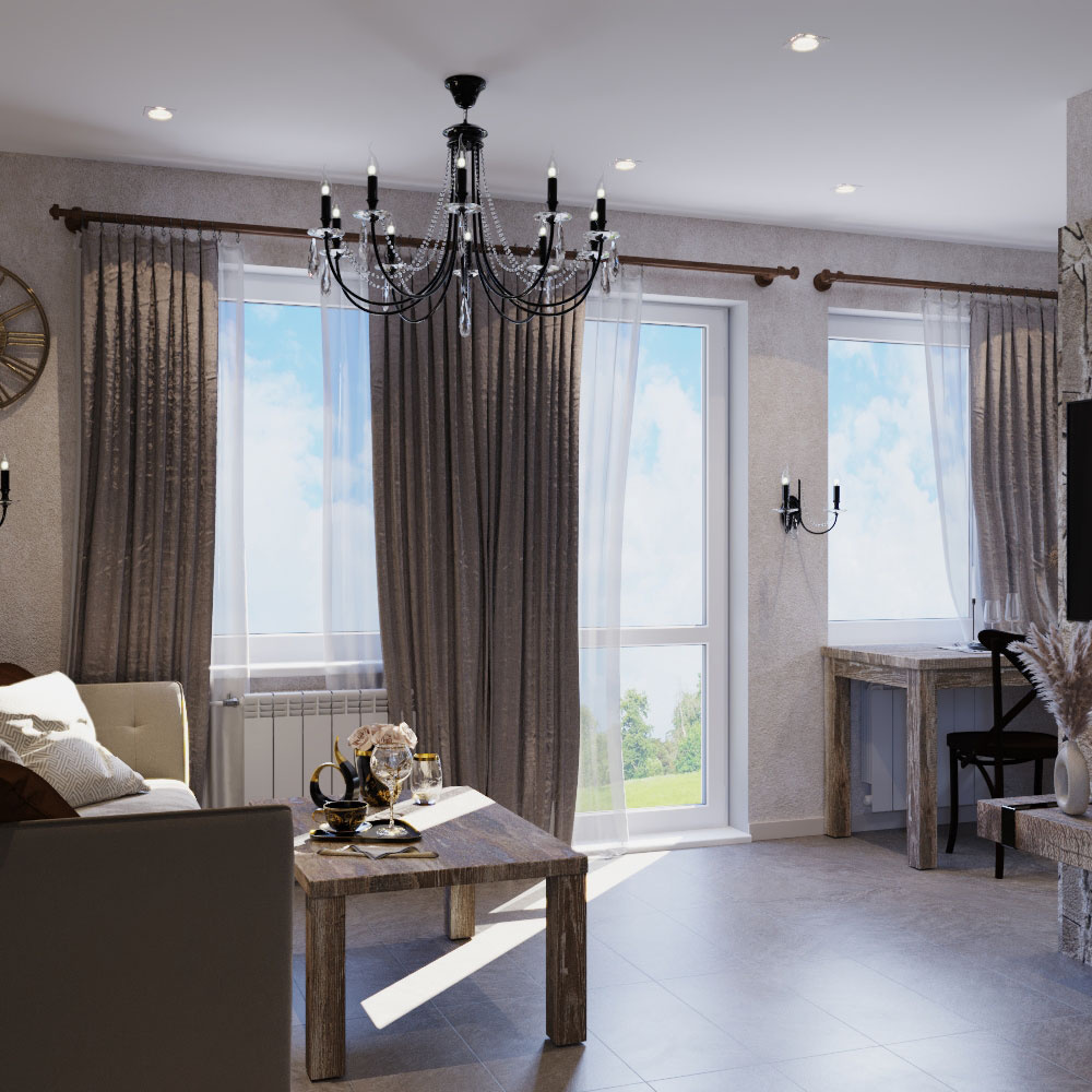 Пожелания заказчика: "мужской характер" помещения, элементы "кавказкого" стиля, мебель из массива, отделка стен натуральным камнем, функциональная кухня с открыми и крытыми местами для хранения.
