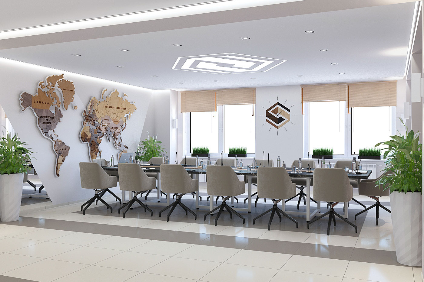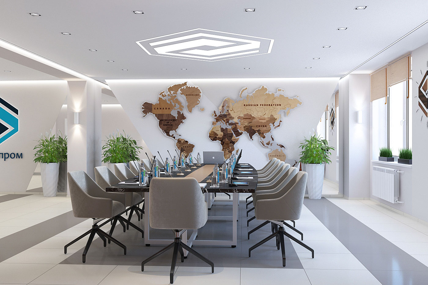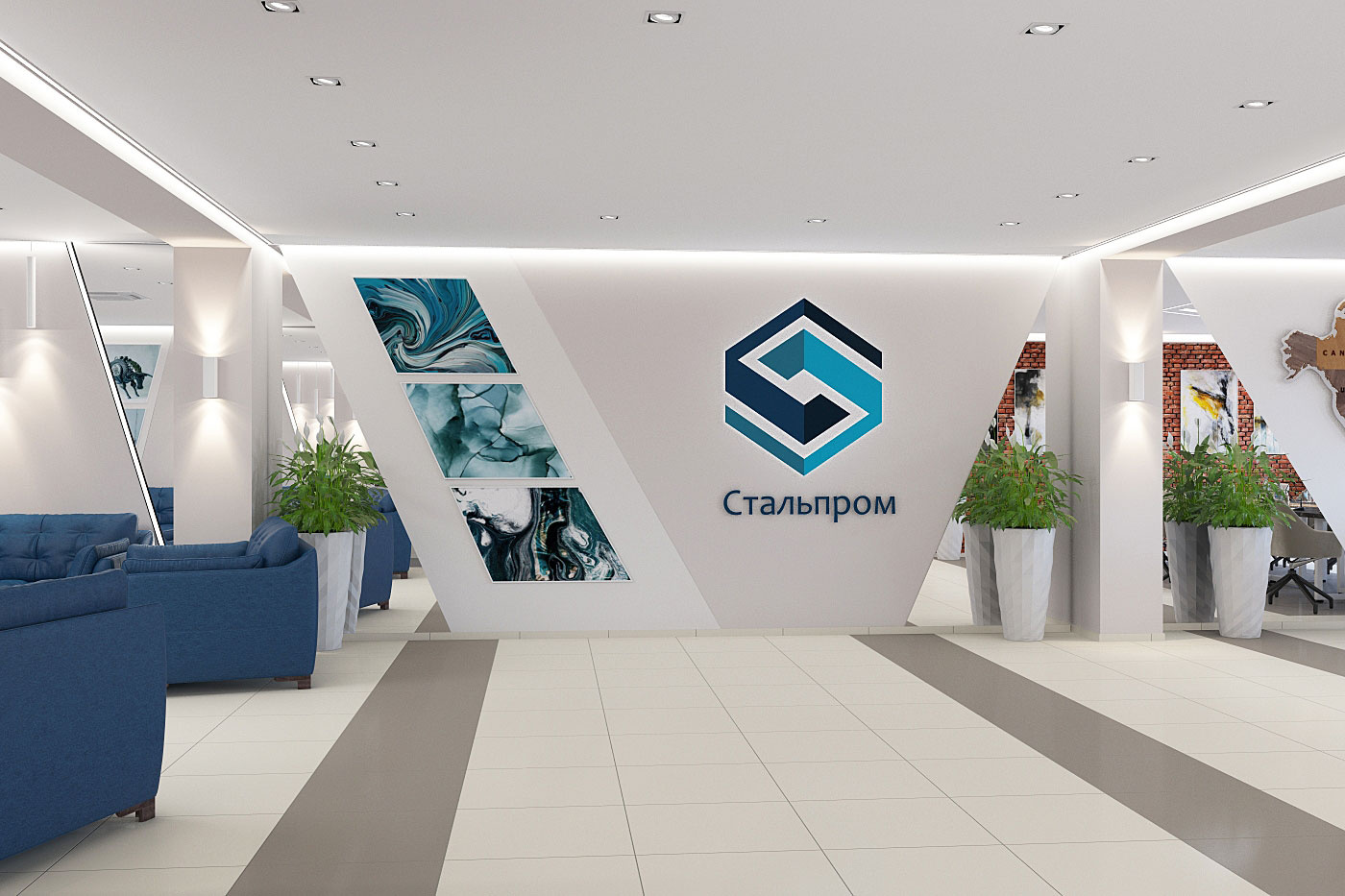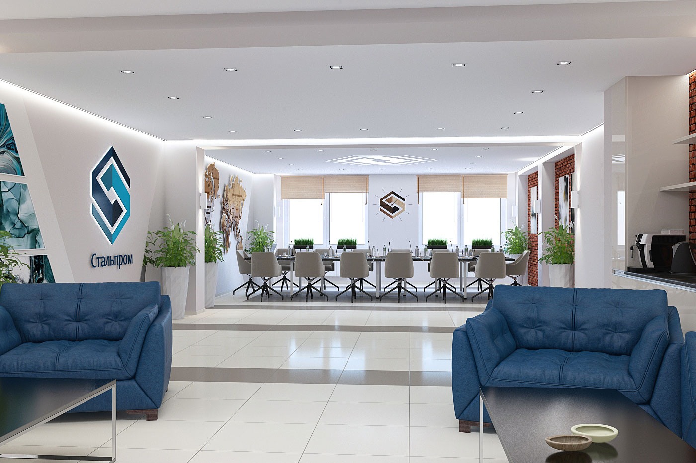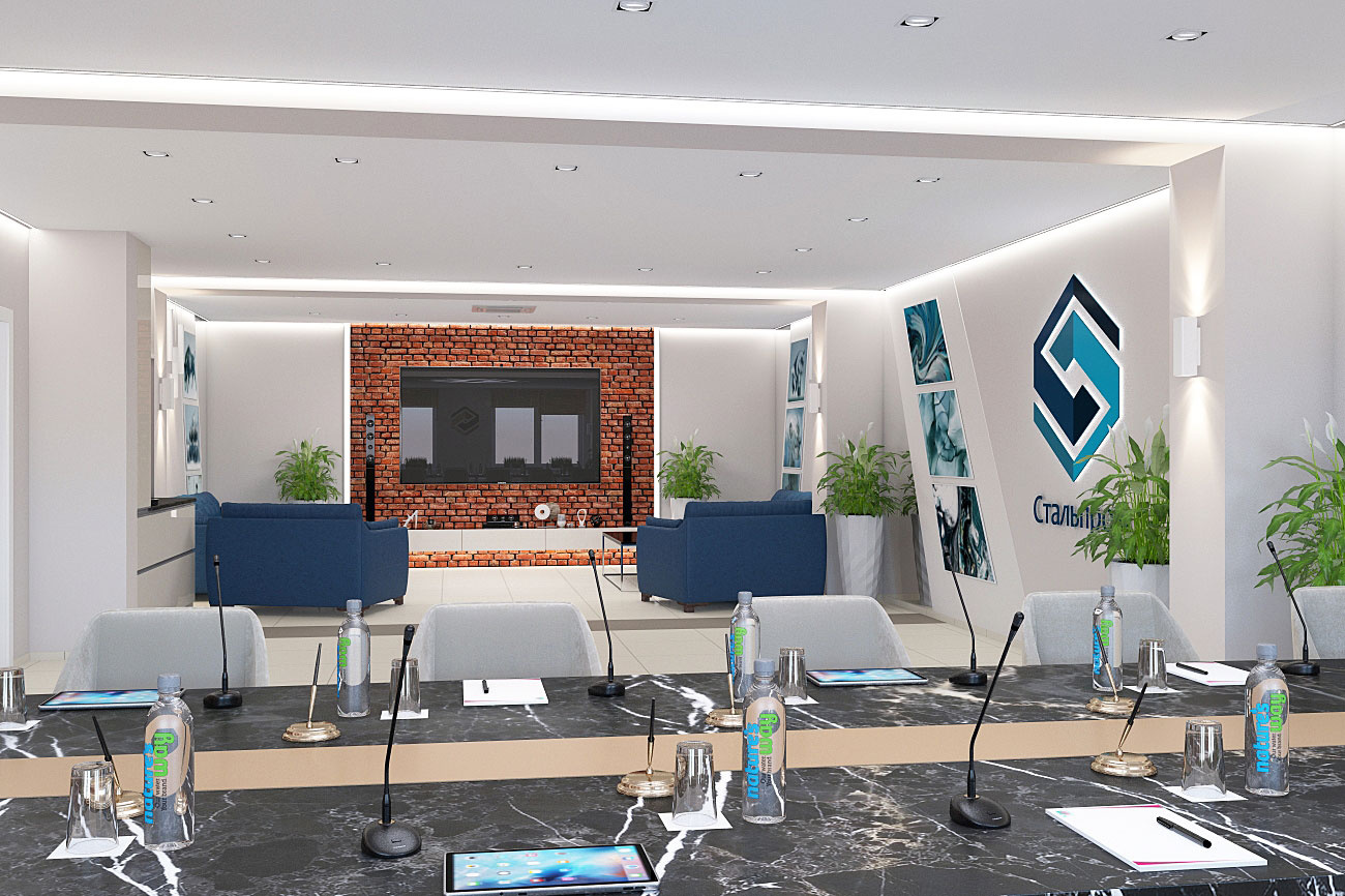 Дизайн проект интерьера актового зала и переговорной в офисном здании компании Стальпром в Кирове.