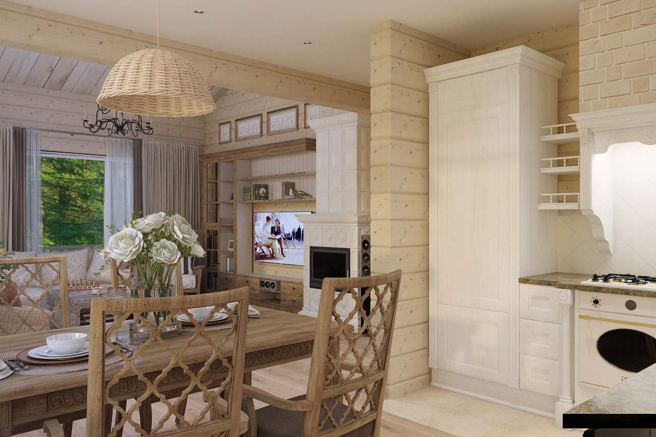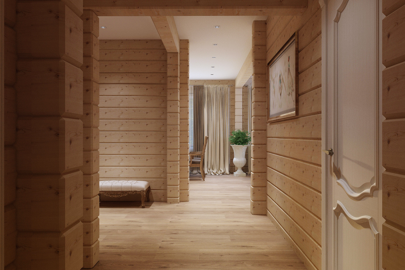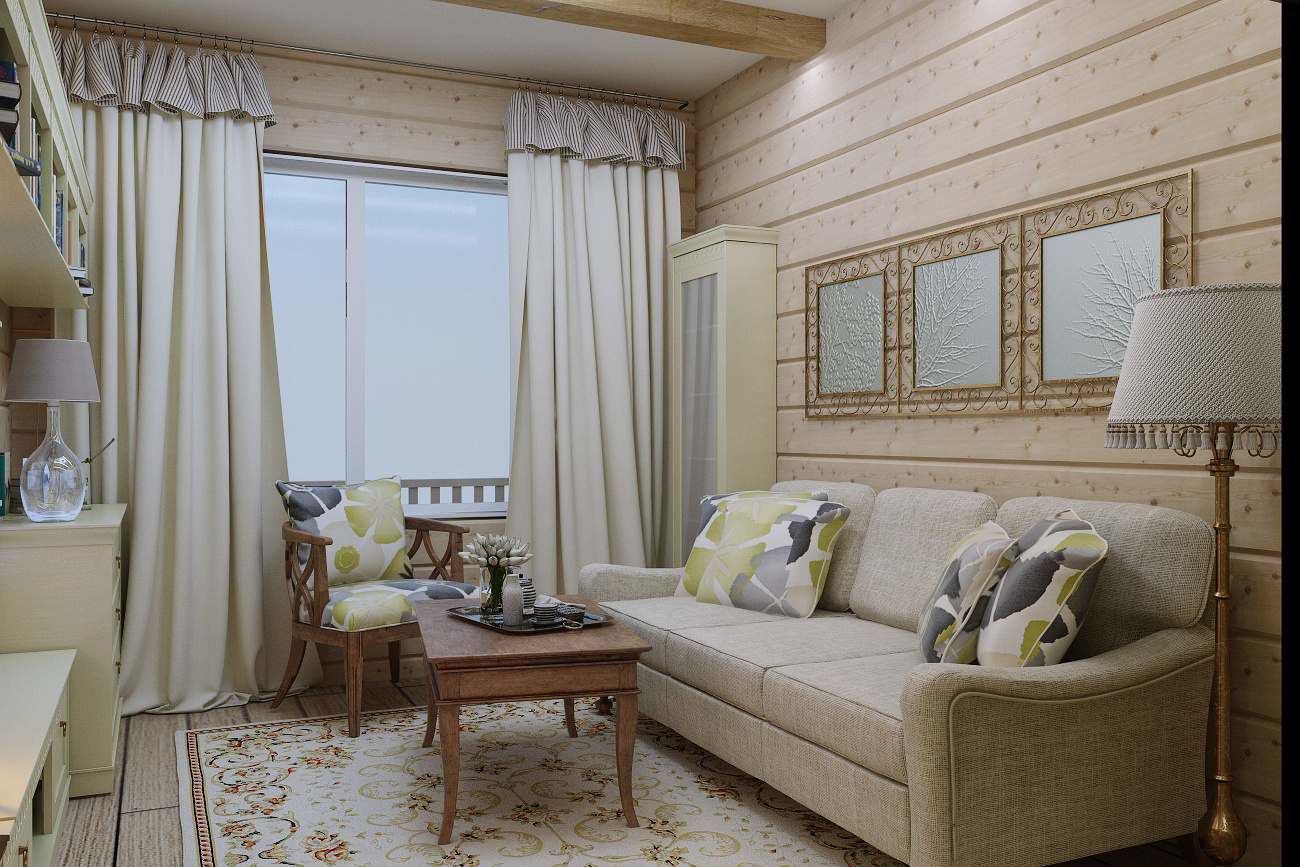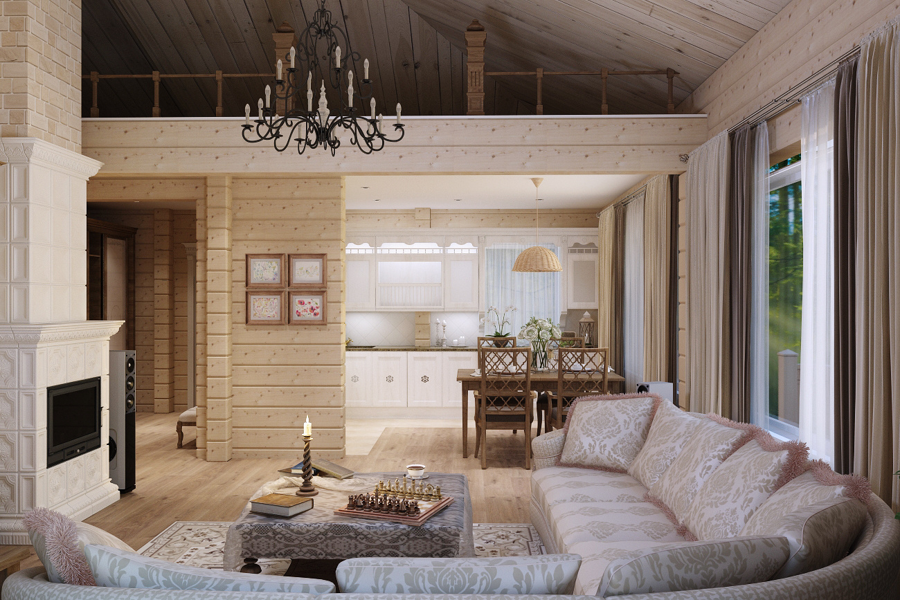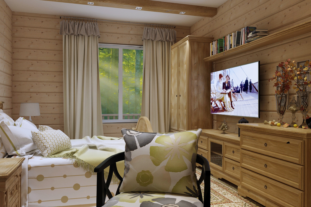 Дизайн проект интерьера одноэтажного дома из бруса в Кирове. На основании пожеланий клиента, для отделки дома были выбраны натуральные и экологичные материалы: натуральное дерево для декоративных элементов, мебель из массива, натуральный текстиль в обшивке мягкой мебели, шторах и декоративных элементах.