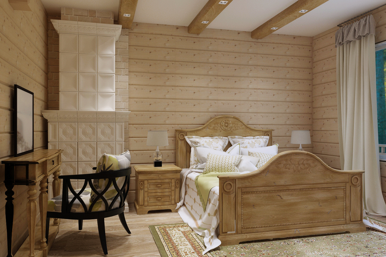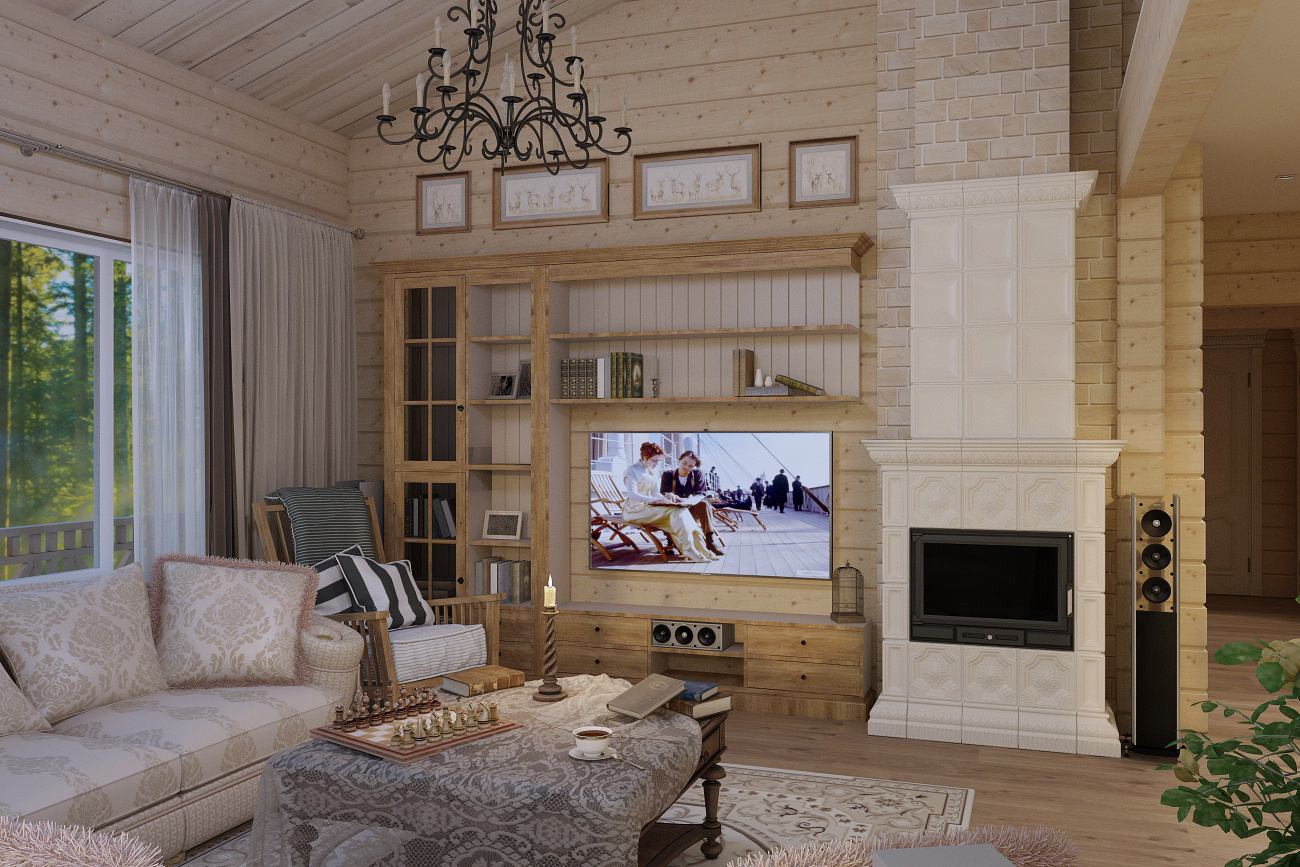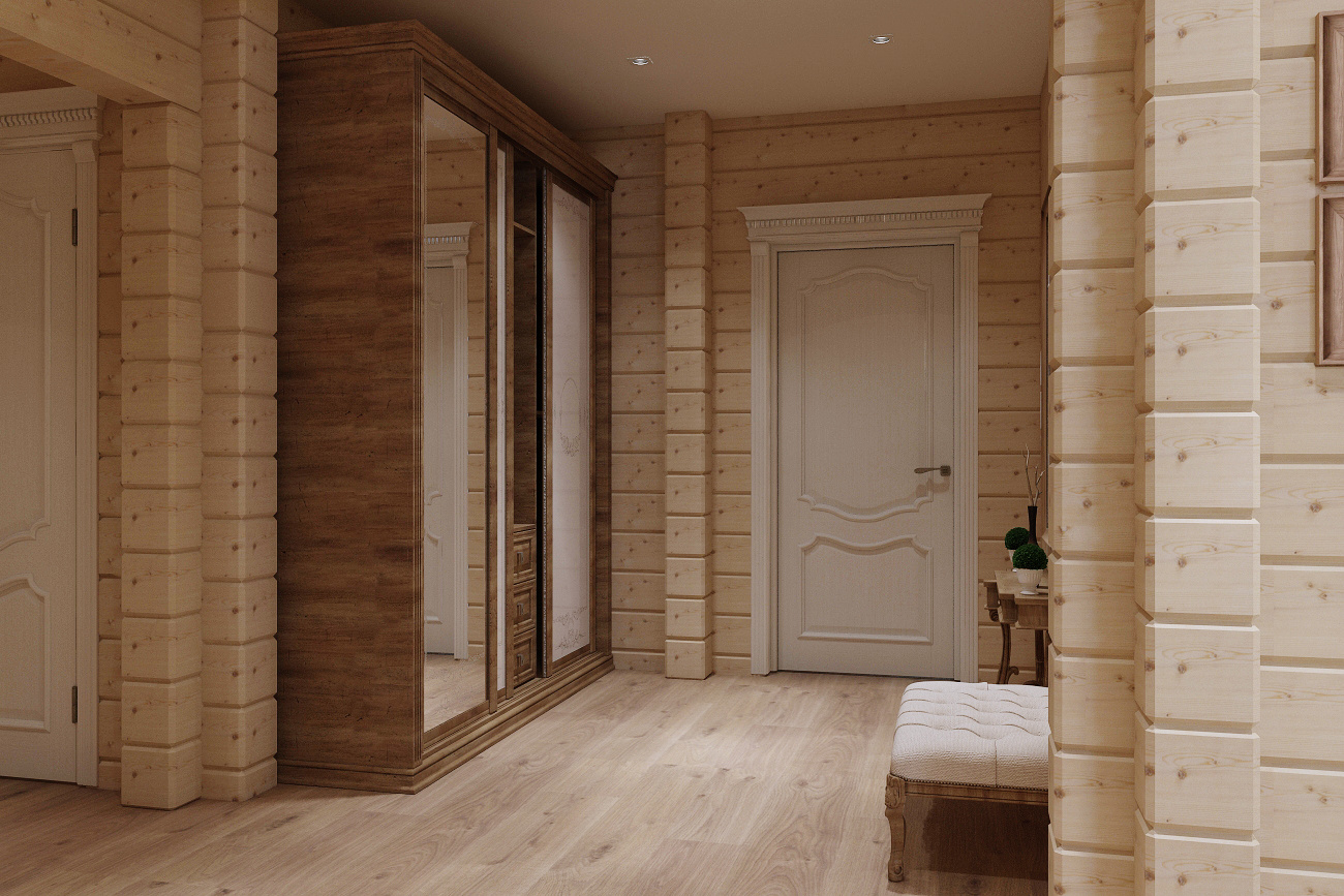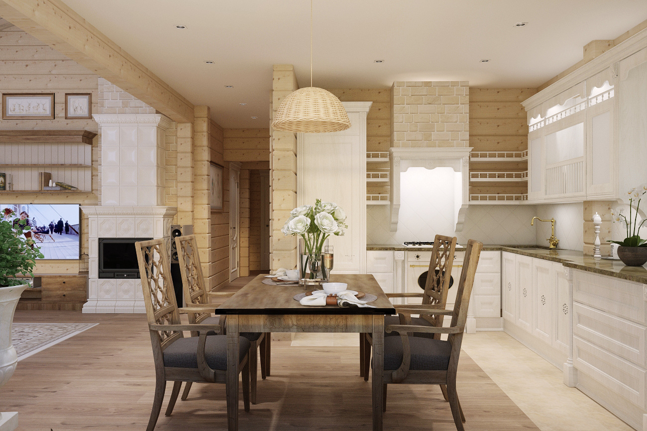 Дизайн проект интерьера одноэтажного дома из бруса в Кирове. На основании пожеланий клиента, для отделки дома были выбраны натуральные и экологичные материалы: натуральное дерево для декоративных элементов, мебель из массива, натуральный текстиль в обшивке мягкой мебели, шторах и декоративных элементах.