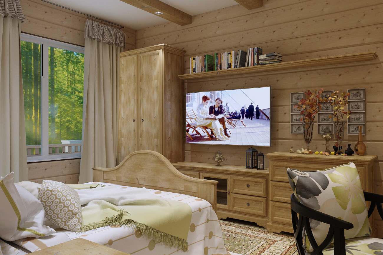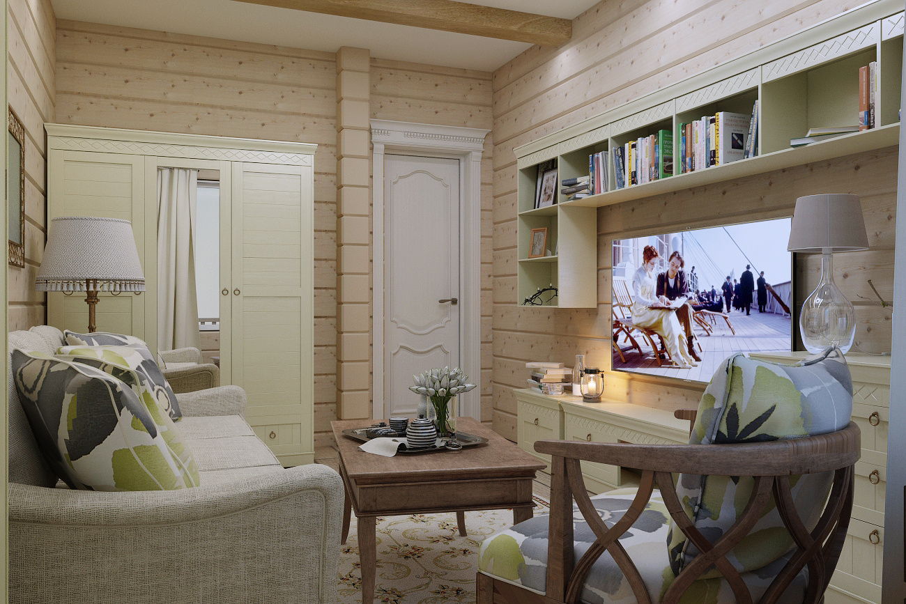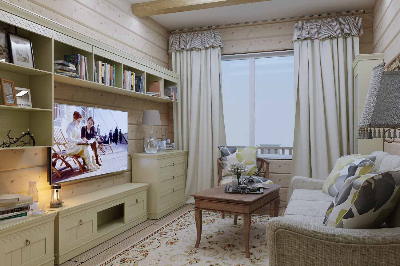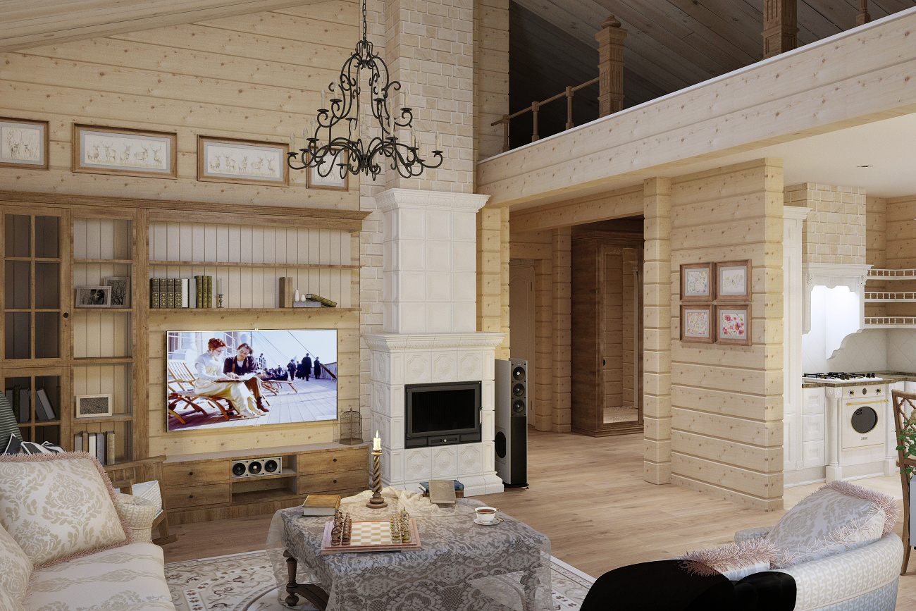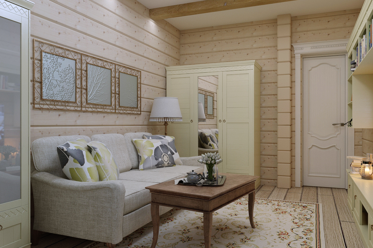 Дизайн проект интерьера одноэтажного дома из бруса в Кирове. На основании пожеланий клиента, для отделки дома были выбраны натуральные и экологичные материалы: натуральное дерево для декоративных элементов, мебель из массива, натуральный текстиль в обшивке мягкой мебели, шторах и декоративных элементах.