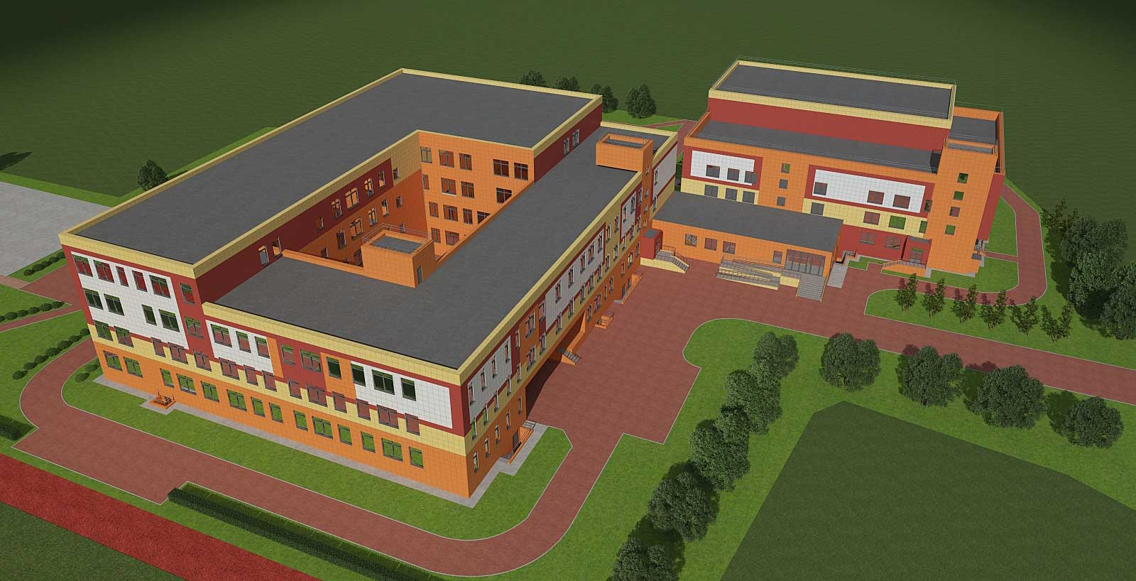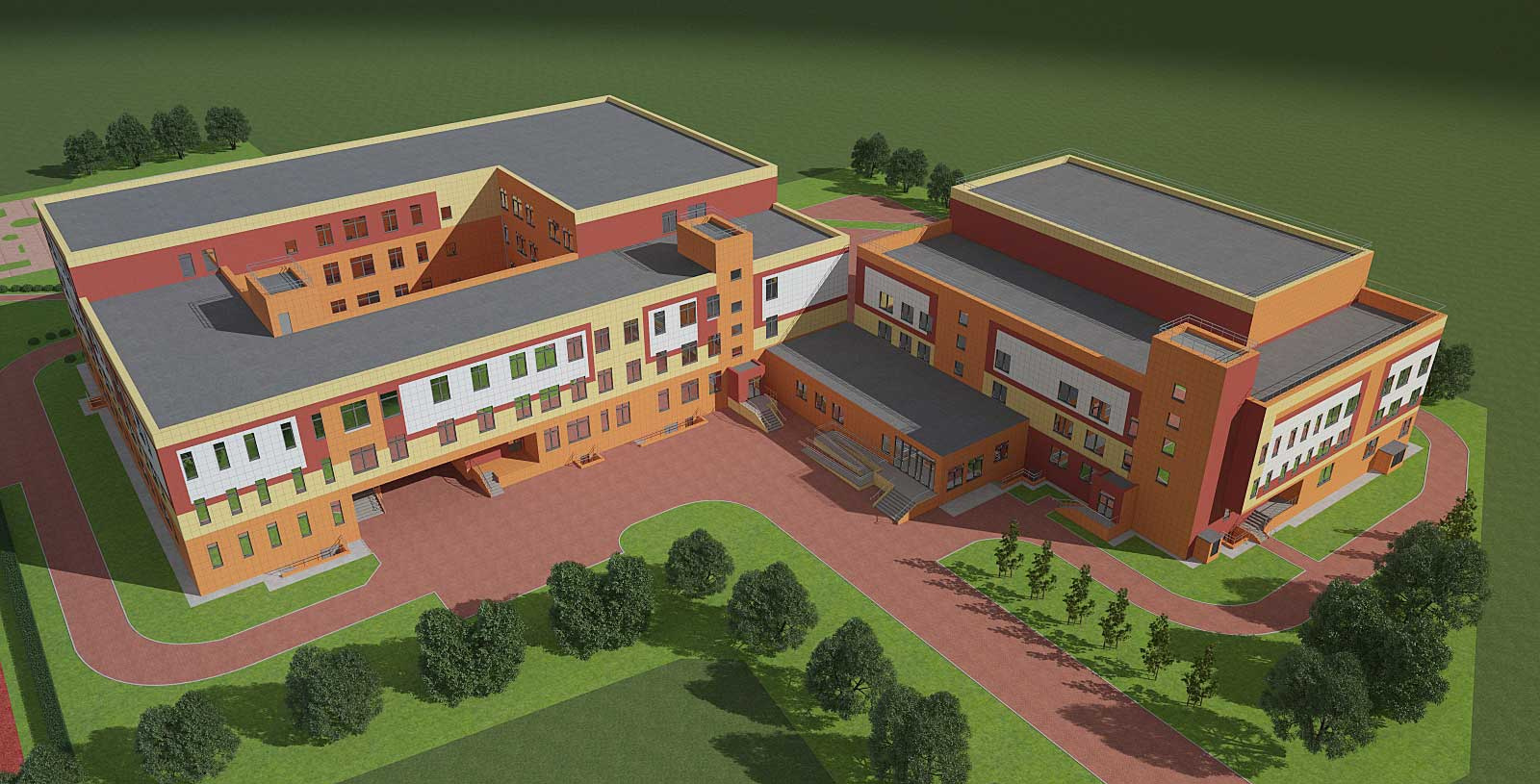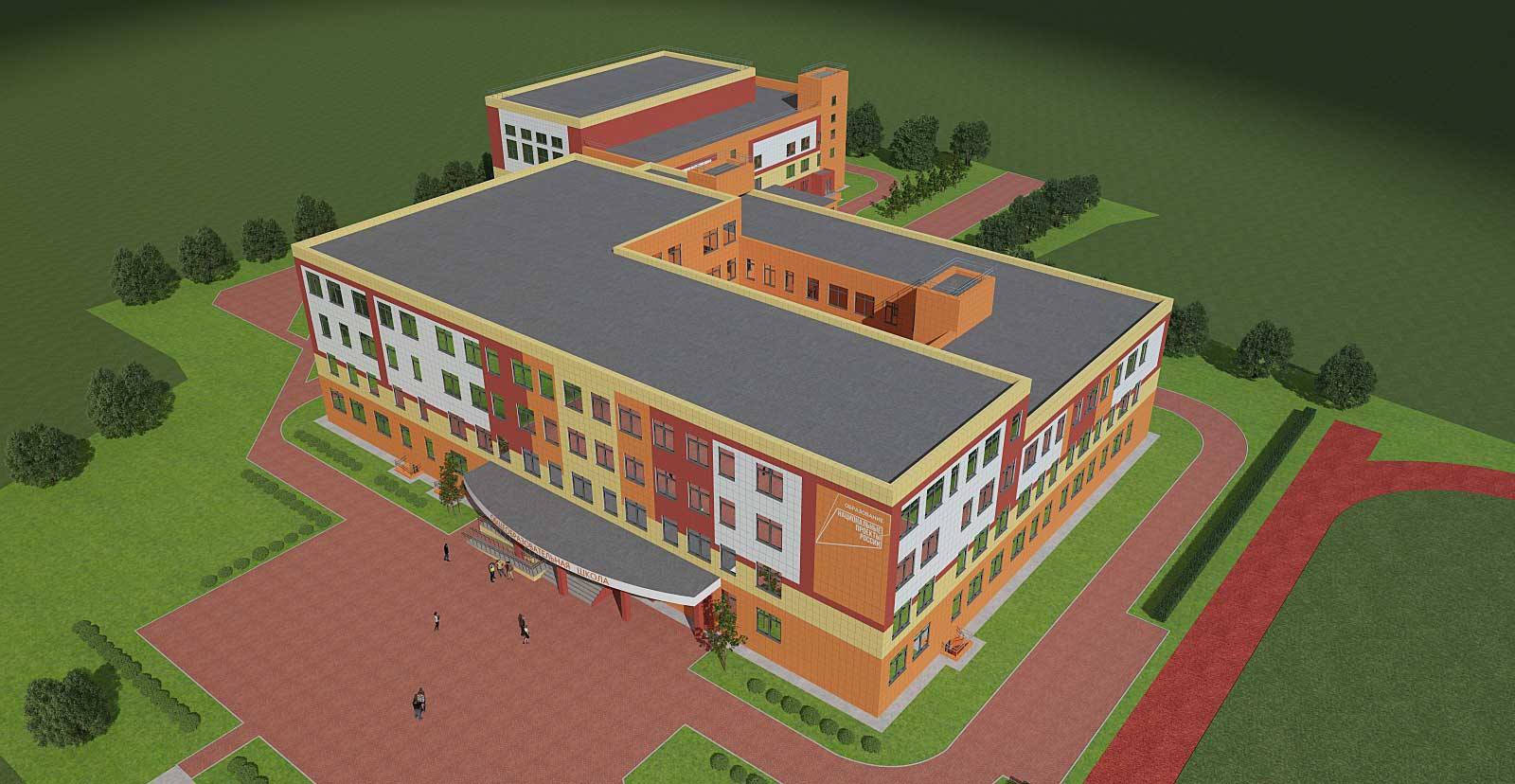 Дизайн фасада здания общеобразовательной школы в Кирове.