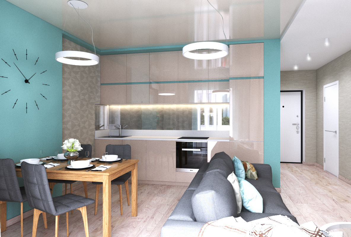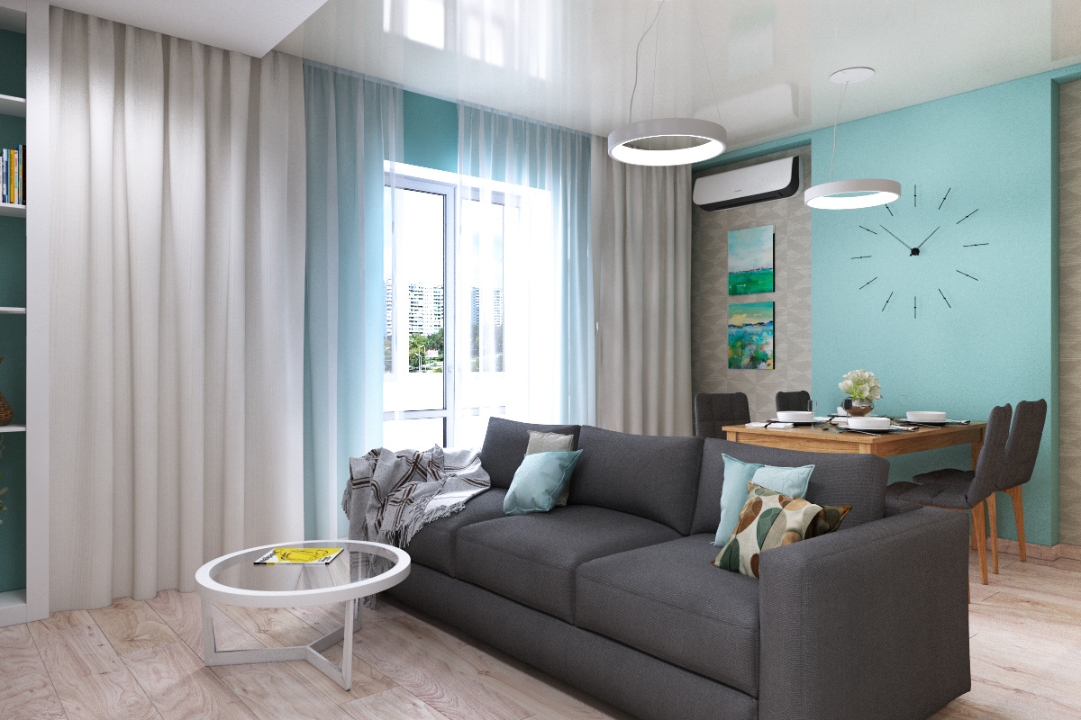 Дизайн проект интерьера квартиры студии 45 кв.м. в современном стиле в Кирове.
