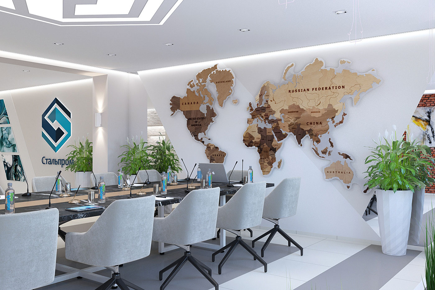 Дизайн проект интерьера актового зала и переговорной в офисном здании компании Стальпром в Кирове.